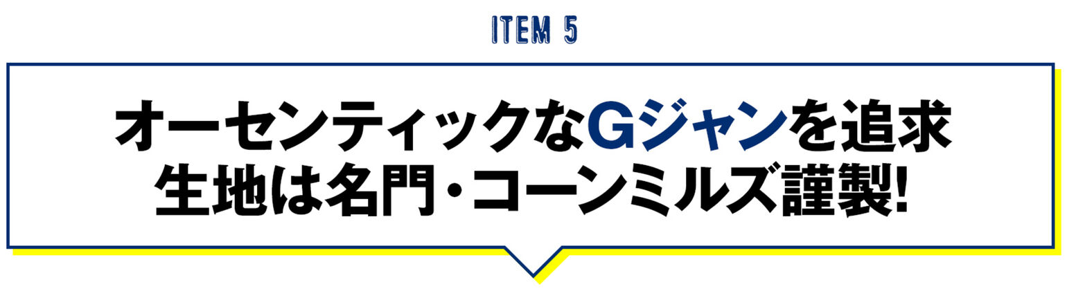 「MA-1に象徴されるショートアウターの再燃もあり、改めてGジャンへの注目が高まっている昨今。コーディネートの主役はもちろん、近頃ではカーディガン感覚でコートの中に合わせるスタイルも大人気です。こちらは両胸に配されたV字のヨークを特徴とする、通称 “ サード型 ” と呼ばれる最もベーシックなデザイン。そして目の肥えたジーンズ好きがこだわるアメリカの名門デニム地メーカー、コーンミルズ(現コーンデニム)社製の生地という点も見逃せません」