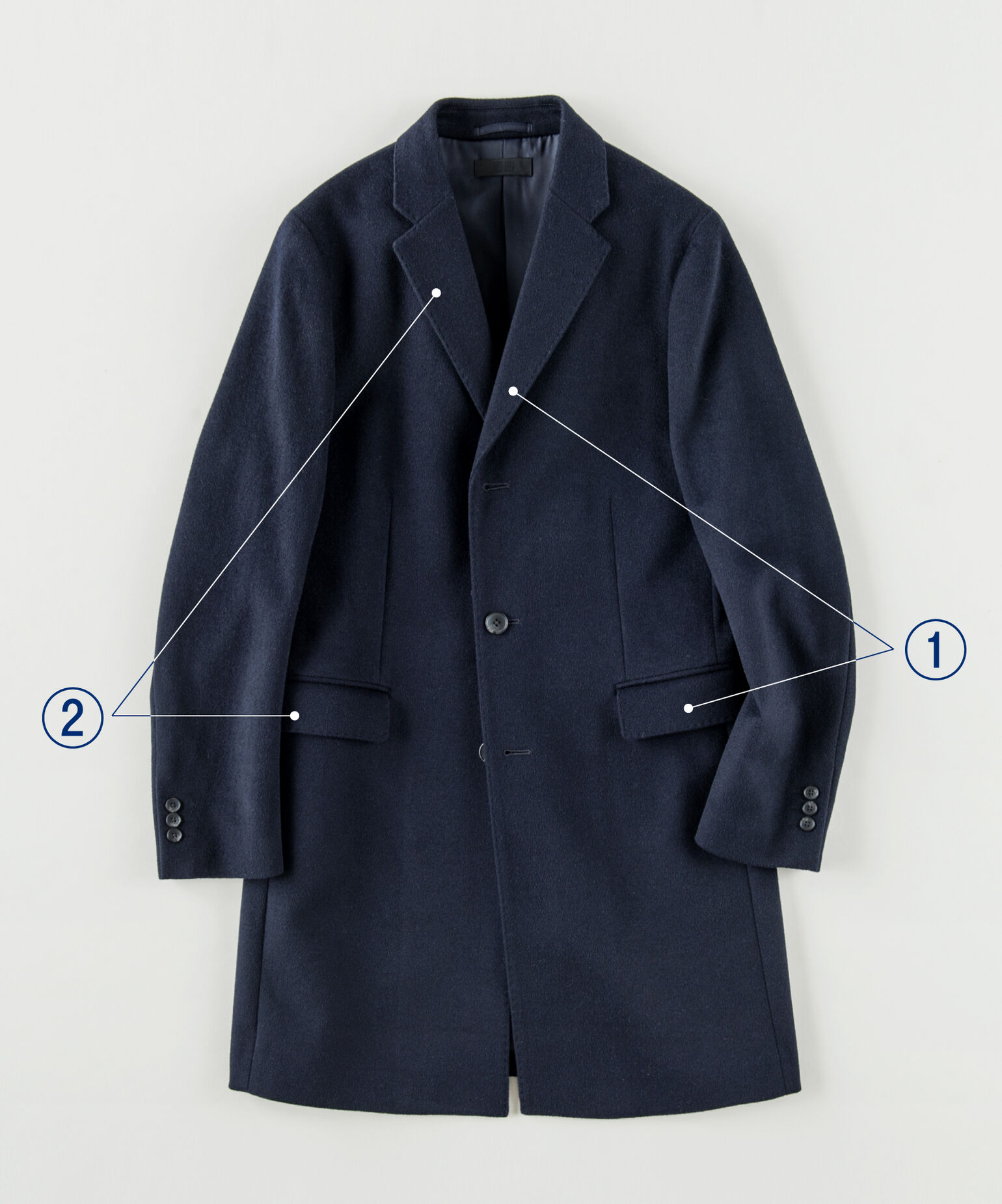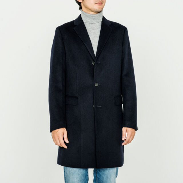「クラシックコートの代表格であるチェスターフィールドコート。以前はビジネススタイルやドレッシーな装いに羽織るのが基本でした。しかし近年では、上に紹介のようなスウェットパーカやインナーダウン、そしてジーンズといったカジュアルな着こなしに合わせるのも人気が高く、ラフな格好を一発で大人っぽく格上げできます。ユニクロのこちらは、見た目にも上質なウール×カシミヤ素材が贅沢な逸品です」