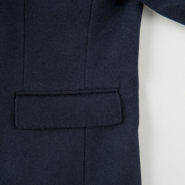 スタイリッシュでスッキリとした印象を与えられるよう、ラペル(下衿)の幅を約5mm細く、ポケットフラップの幅も1cmほど短く変更された。