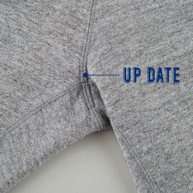 裾口&袖口のリブのテンションを従来より若干ゆるめに変更し、締め付け感を軽減。併せて、ブラウンジング(リブの付け根の生地の膨らみ)のボリュームも抑えてスッキリと見えるように。