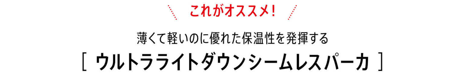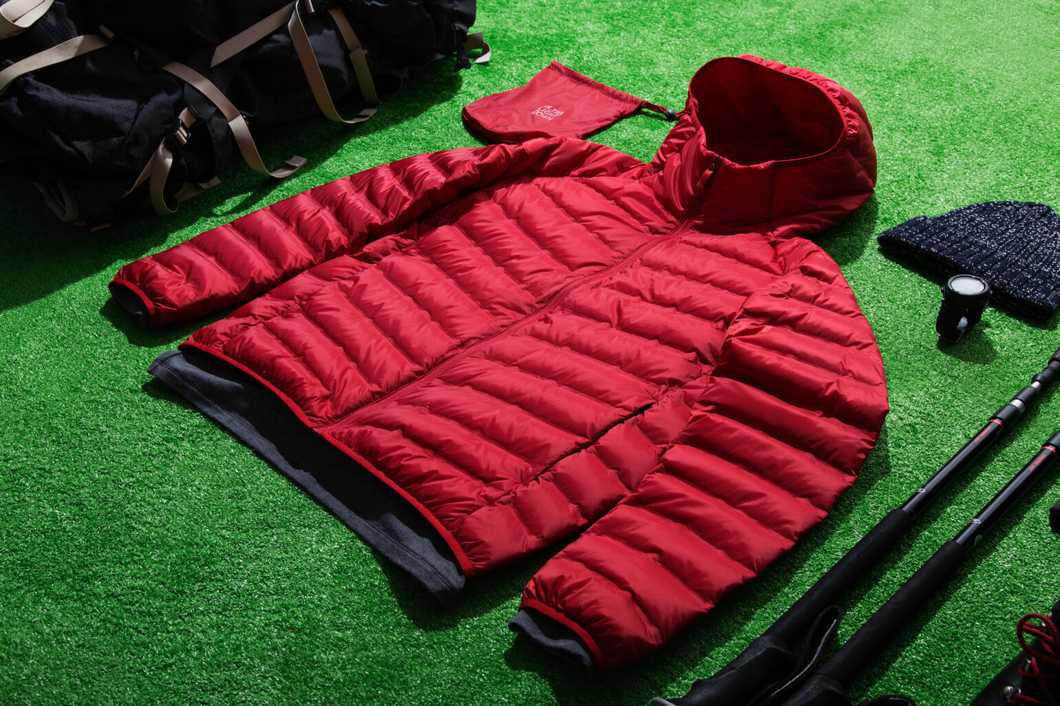 「寒いところで快適に過ごすためには保温性が何よりも重要。でもかさばるウェアでは、暑くて脱いだ時に持て余してしまいます。そんな時にはコンパクトに収納できて軽いダウンウェアが何よりもオススメ。このウルトラライトダウンシームレスパーカはそういった用途にピッタリな上、ダウンの入っている部屋をステッチではなく圧着接着テープで分けているため、風や雨の侵入を防ぐのです。また縫い目からダウンが飛び出すようなこともありません。着ぶくれしないスッキリとしたシルエットなので、アウターとしても、ミッドレイヤーとしても使える万能性が魅力な一着です」