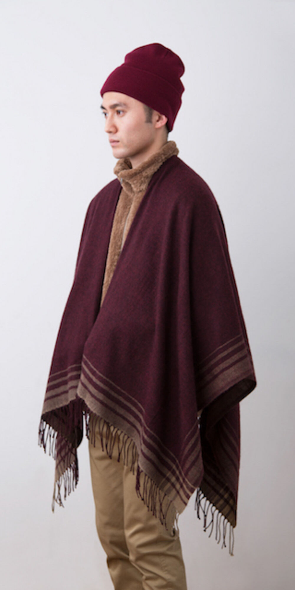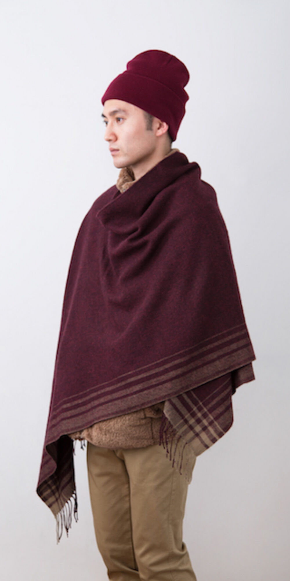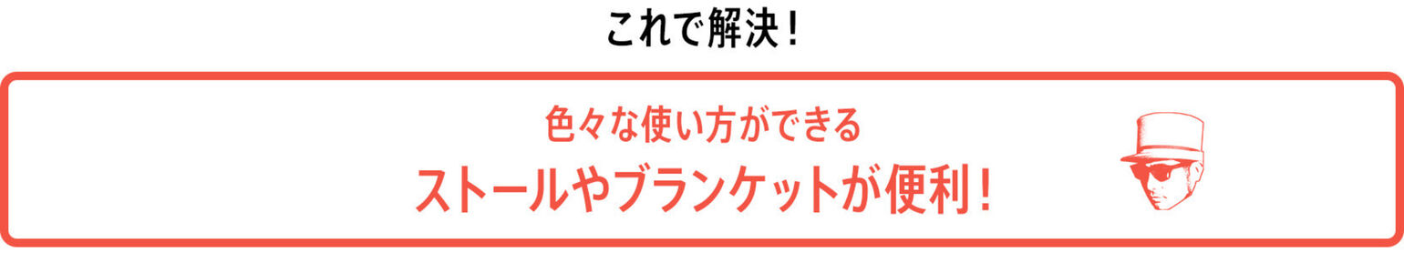 「持ってきた服は全部着たけどまだ寒い、なんて時に活躍しそうなのが、この2wayストール。首元が寒く感じてきたら首に巻いて、背中が寒く感じてきたら肩から羽織ってと、状況に応じて使い分けできるのが良いですね。また2wayとは言っても、実際はひざ掛けにもなるし、時には敷物としても使えるでしょう。特にキャンプやフェスに行くと、こんなアイテムが重宝するんです。比較的薄手ですが目の詰まった生地なので、想像以上に保温性は高いですよ」
