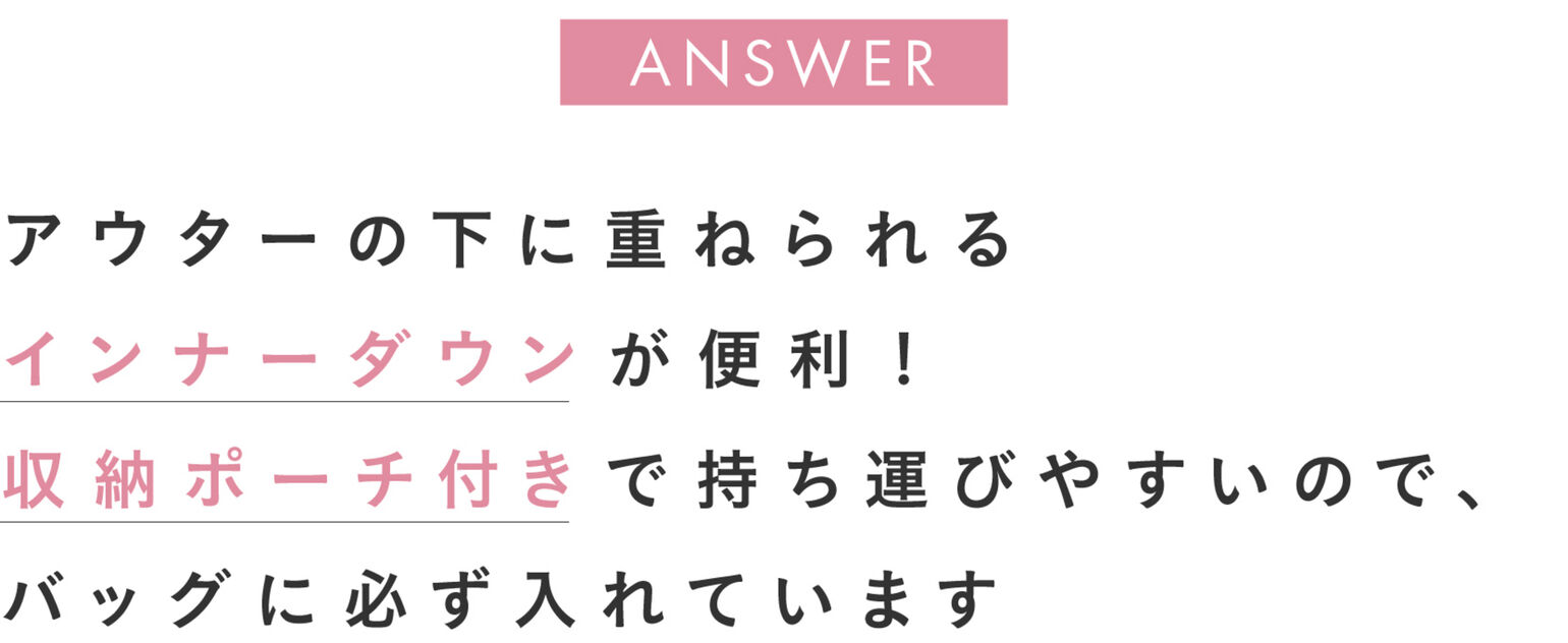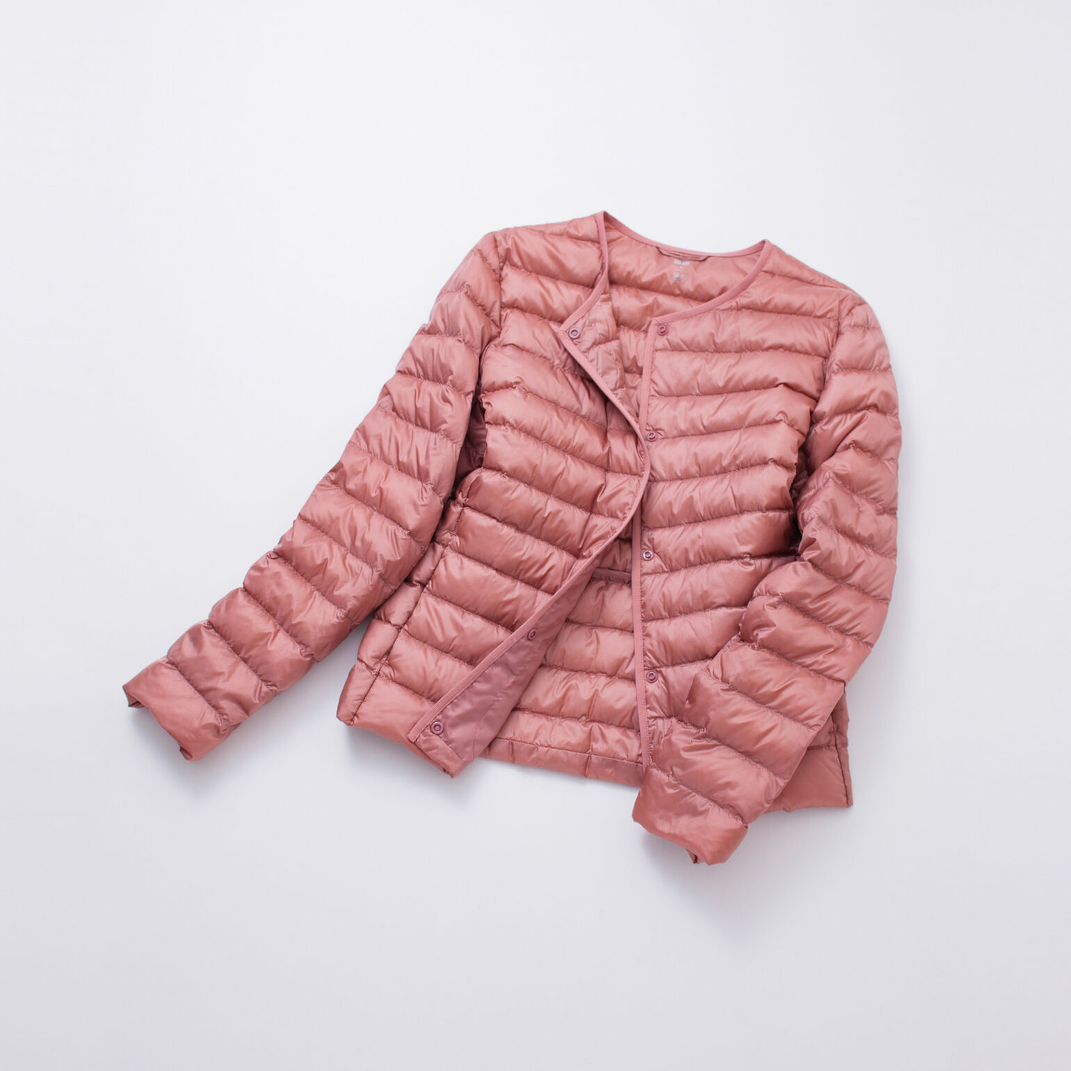 「薄いのにしっかりあたたかいウルトラライトダウンは、コンパクトに収納できるので、季節を問わず旅行には欠かせないアイテムです。私のお気に入りは、アウターの下にレイヤードできるクルーネックのコンパクトジャケット。カーディガンのようなデザインで、下に着るものを選ばないので、飛行機の中や旅先のカフェなど、少し肌寒いと感じたらさっと羽織れるので便利ですよ。ブラックやネイビーなど、合わせやすいベーシックカラーを選ぶことが多いと思いますが、明るいピンクなども、旅行中のコーディネートを考えるのが楽しくなるのでおすすめです」