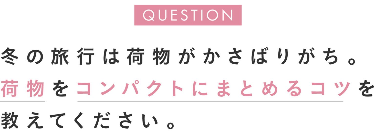 いよいよ2017年も残すところ約1ヶ月となりました。年末年始のお休みに向けて、お出かけプランを練り始めている方も多いのではないでしょうか。特に寒い季節の旅行は、防寒対策のために荷物が多くなりがち。そこで今回は、旅をテーマにした媒体で執筆をおこなうエディターの菅明美さんに、冬の旅行に役立つアイテムをピックアップしていただきました。知っていると役立つパッキングのちょっとしたコツもご紹介します。