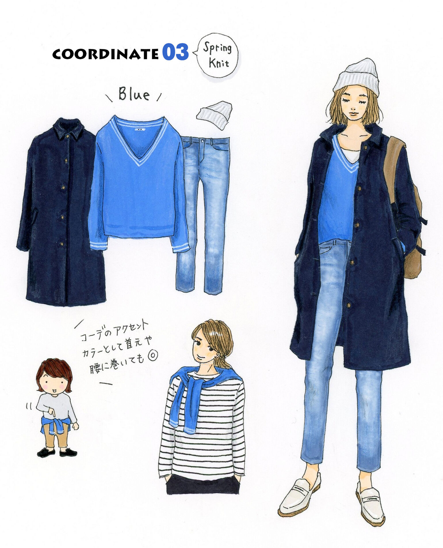 Instagramで今話題のファッションイラスト。大人気のイラストレーターあわのさえこさんが「今着たいユニクロアイテム」を使ったコーディネートを提案する連載、第16弾!寒さも本格的になってきましたが、店舗には春の新商品が少しずつ並び始めています。今回は、さえこさんがこの春チャレンジしたい妄想コーデをご紹介します!アウターを冬物に替えれば今から真似出来る春ニットを取り入れたコーデ。気分も晴れやかになるカラフルなニットを取り入れた春先取りコーディネートは必見ですよ。