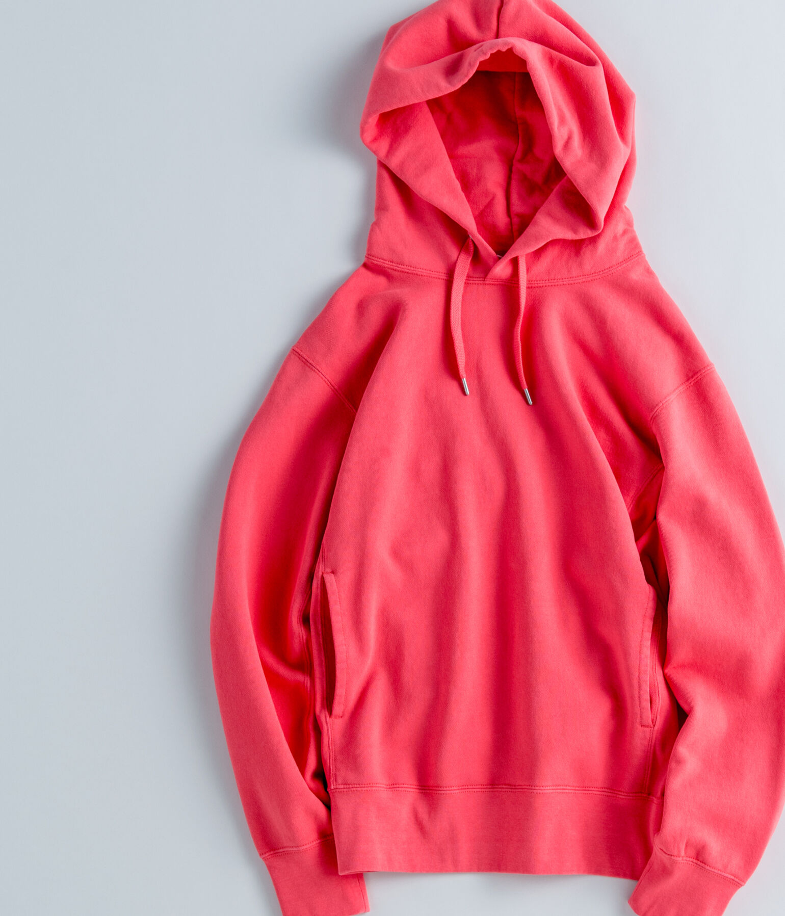 定番カラーのネイビーやグレーに加え、暖かくなってきたら彩りのあるスウェットで季節感のある装いを楽しみたいですね。またデザインはベーシックながら、こうしたキレイな発色で魅せるアイテムは、今季のトレンドでもあります。次のパーカはコレでキマリ!