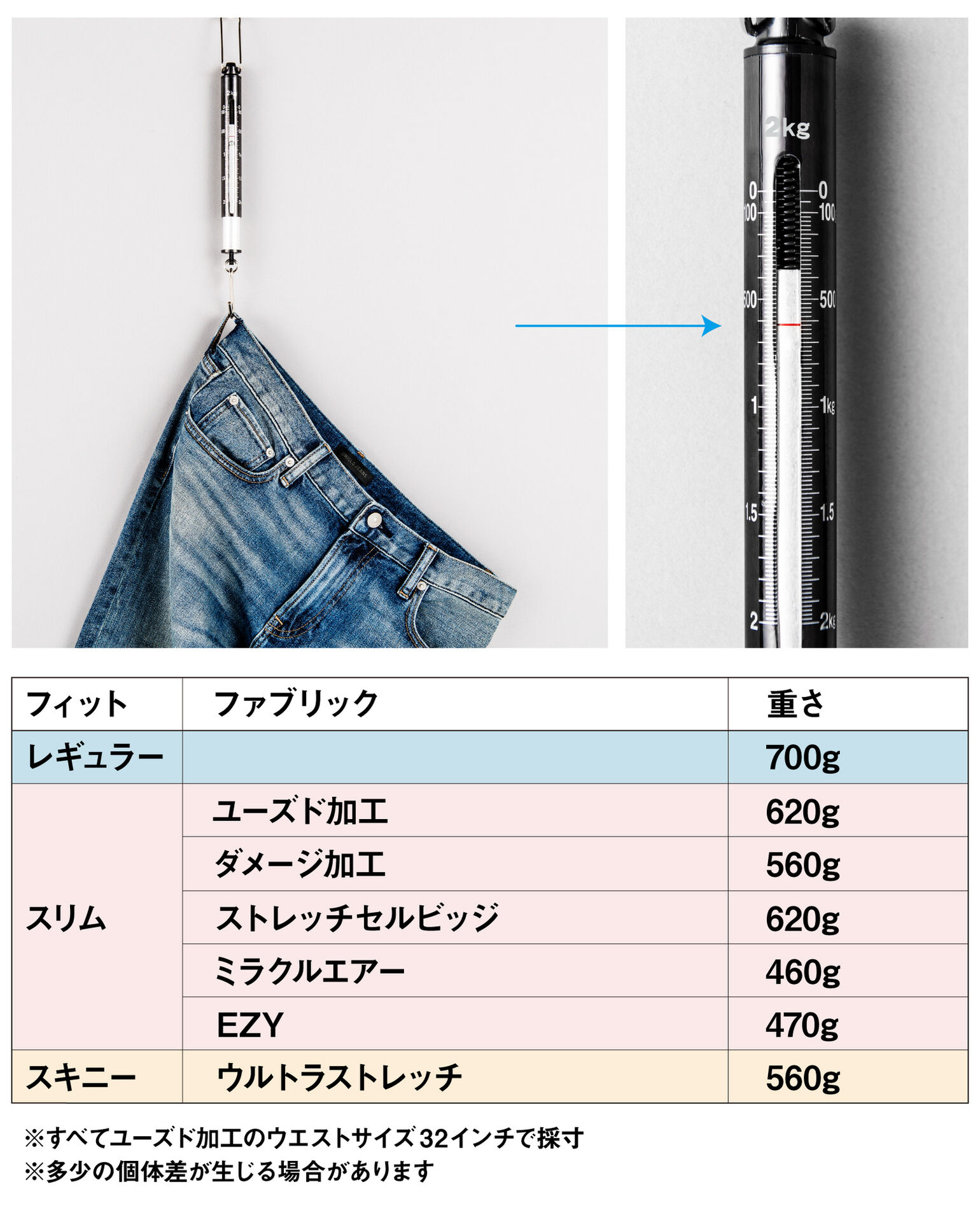 「先進素材のリーディングカンパニーである東レ、デニム生地専門メーカーのカイハラ、そしてユニクロの3社が協力し、日本の高い技術力を集結させて開発した中空構造の特殊繊維が使われています。その効果は、本格的なルックスからは想像もつかないほどの驚きの軽さにあり。さらにソフトな風合い&抜群のストレッチ性も加わって、“ ジーンズ=重厚 ” という固定概念を覆す、非常にコンフォータブルな着用感が実現されています。手に取り、脚を通した瞬間から、あまりにも快適な穿き心地に感動すら覚えるはず」