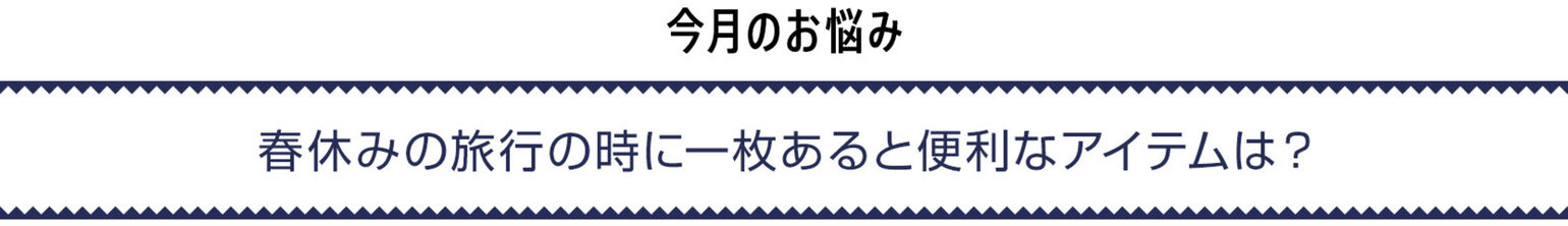段々と近づいてくる春休みの時期。そこで今回は「春休みの旅行の時に一枚あると便利なアイテムは?」というお悩みについて。せっかくの旅行だから色んなところに足を伸ばしたいし、ちょっとした山登りやハイキングだってしたい。そんな時に役立つのはどんなアイテムでしょう?