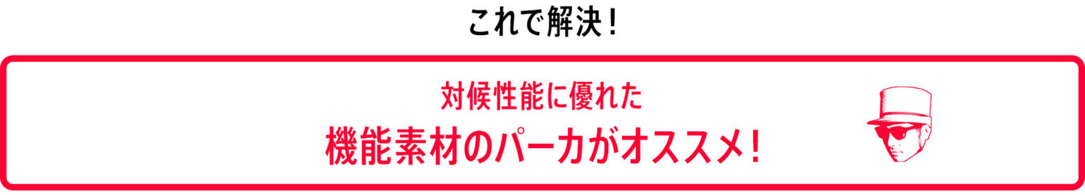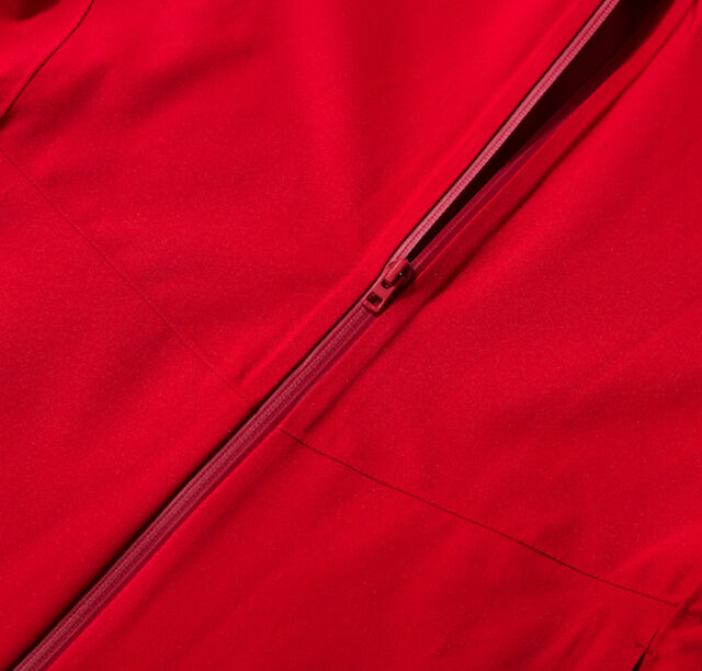 「防水透湿機能に加えストレッチ性も備えた生地を採用。防風性もあり、また耐久撥水加工で雨や汚れを寄せ付けません」
