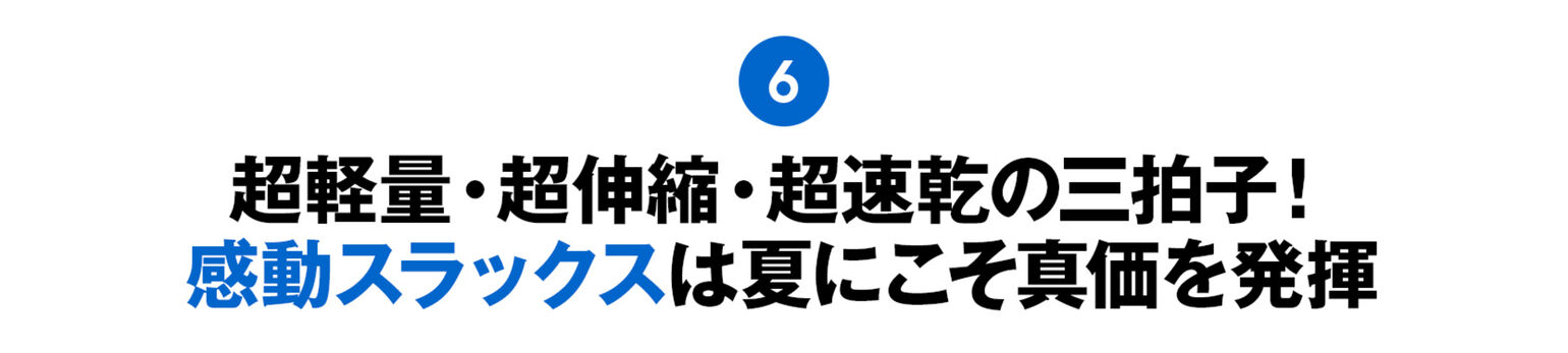 他にも、お腹回りが楽チンなストレッチの効いたウエスト、着用時もシワになりにくく、アイロン掛けが簡単なイージーケアもありがたい。通年で活躍しますが、なかでも暑い季節にこそ最大効果を発揮します」