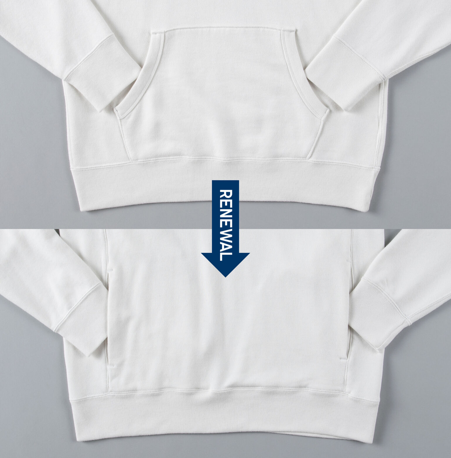 「僕が愛用しているパーカは以前のタイプですが、最新版ではポケットの形状が縦長に変更されています。これは体型をシュッとスマートに見せるスタイルアップ効果をもたらす工夫で、僕も買い替えを検討中」