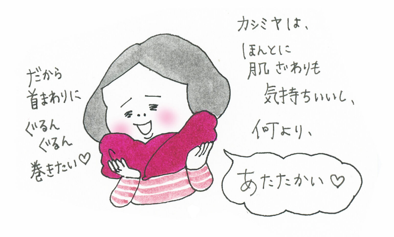 カシミヤは、ほんとに肌ざわりも気持ちいいし、何よりあたたかい♡だから首まわりにぐるんぐるん巻きたい♡