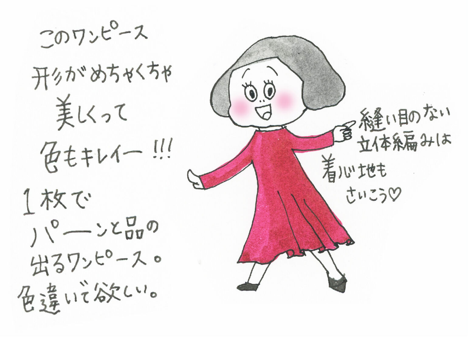 1枚でバーンと品の出るワンピース。色違いで欲しい。縫い目のない立体編みは着心地さいこう♡