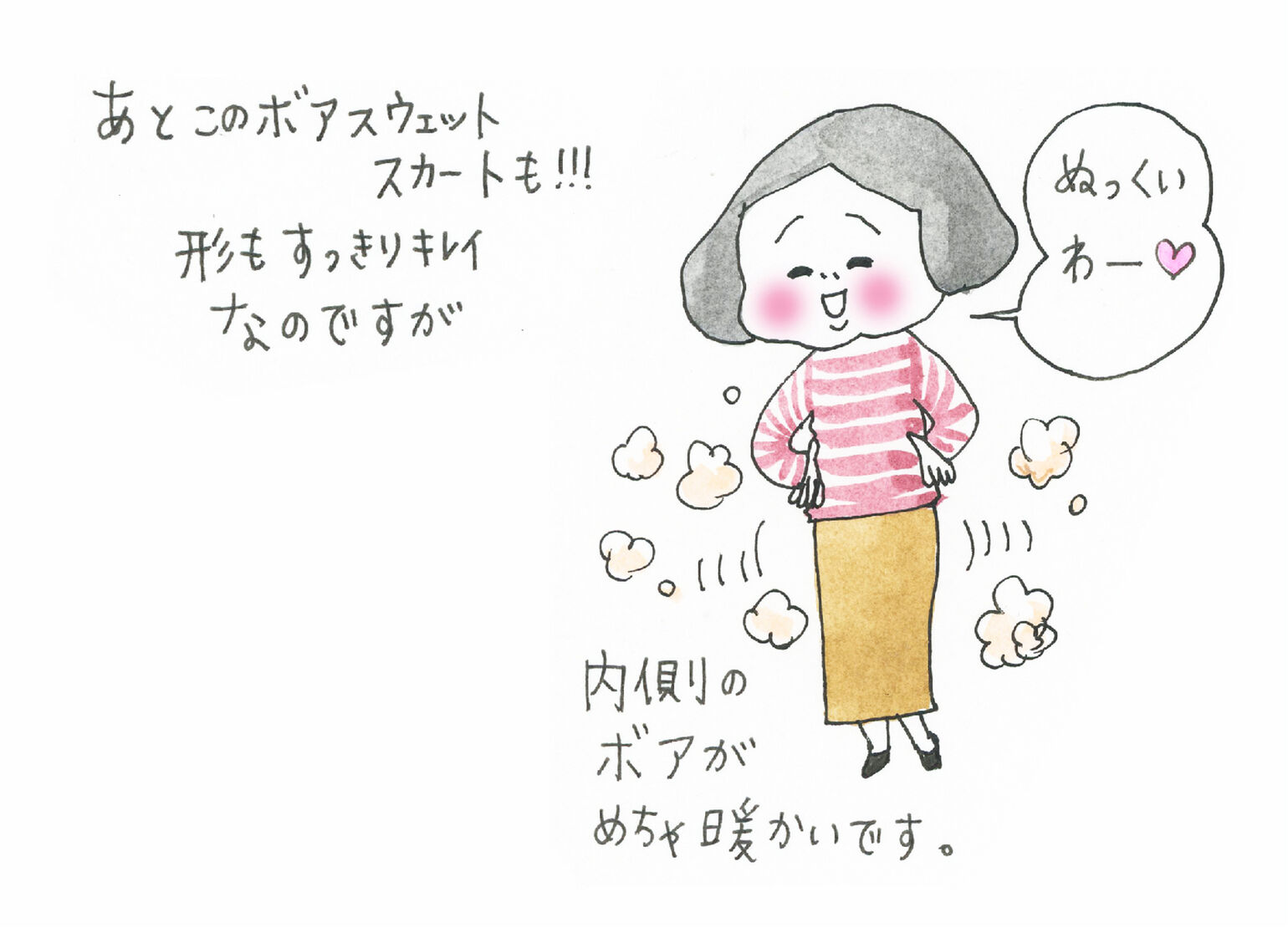あとこのボアスウェットスカートも!!! 形もすっきりキレイなのですが内側のボアがめちゃ暖かいです。「ぬっくいわー♡」