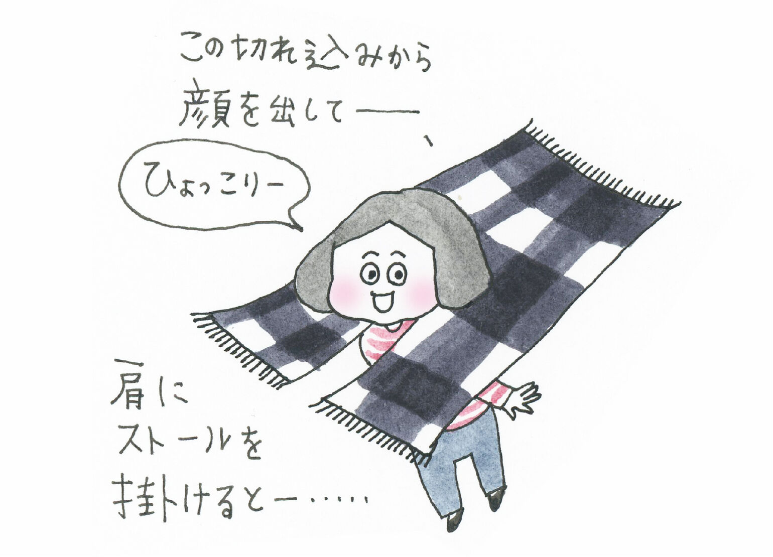 この切り込みから顔を出してー、肩にストールを掛けるとー・・・