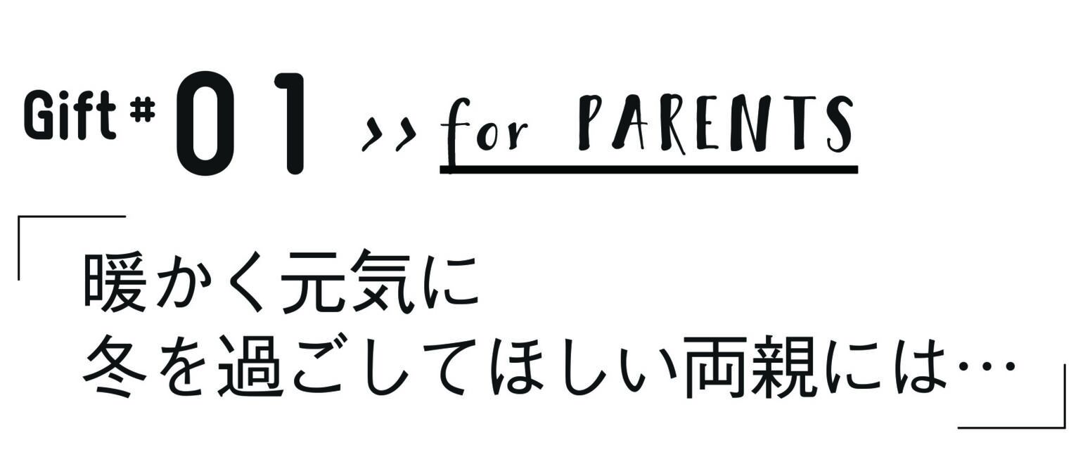 「風邪を引いてもらいたくないので、UNIQLOの代名詞とも言える、ウルトラライトダウンとカシミヤセーターをセットにします。冬の軽くて暖かアイテムは、年齢を重ねた両親にぴったり。母には、若々しくて、肌映りもきれいなピンクをチョイス。異素材の掛け合わせで、グラデーションのおしゃれを楽しんでもらいたいと思います。父は、シックなグリーンに着まわしのきくライトグレーを。紳士的で、清潔感のある組み合わせを選びました」。