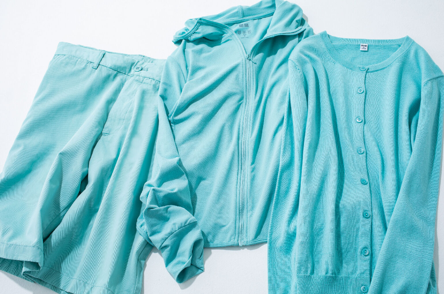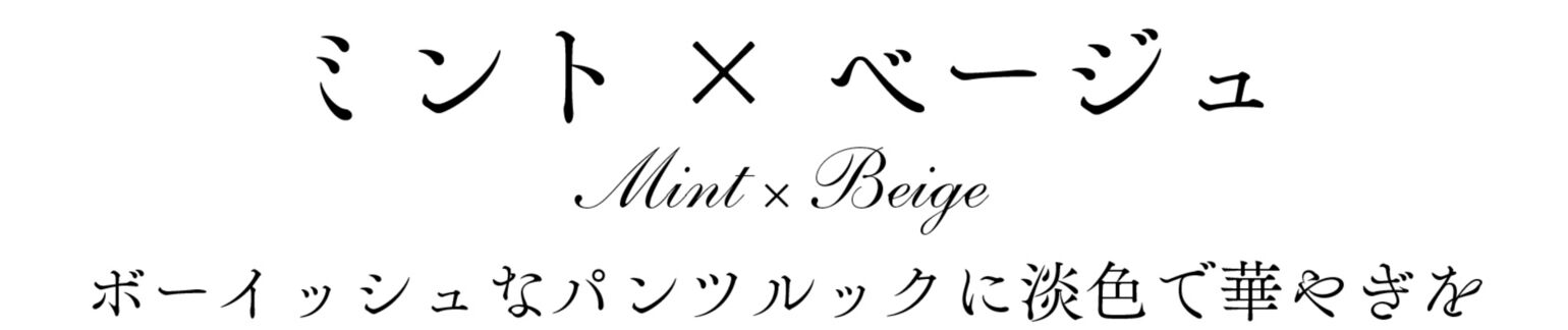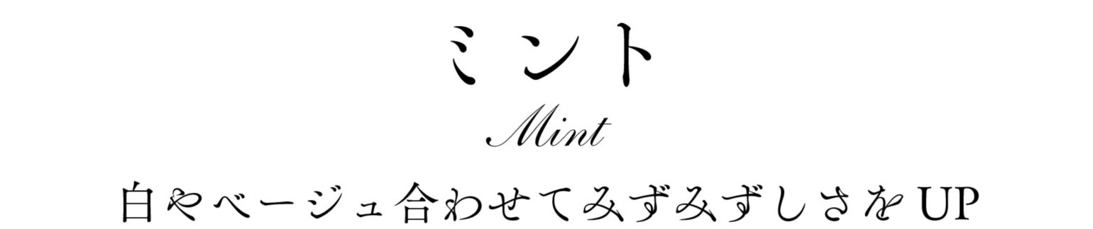 夏色の代表格、ミントカラーも今季は少しスモーキーなペールトーンがおすすめ。クリーンな白やベージュと合わせて、優しげなミントを上手く引き立てるのが正解です。