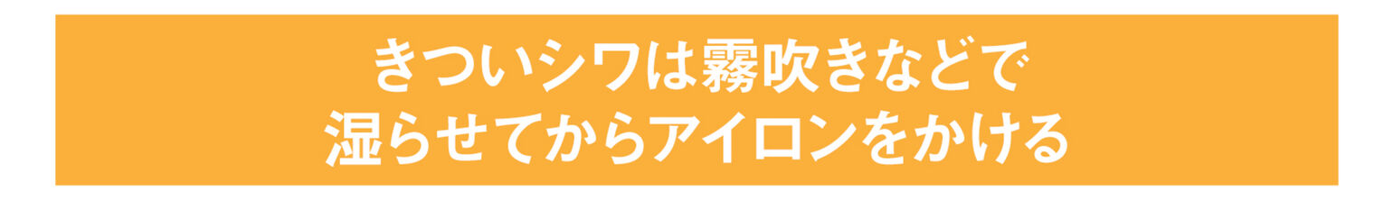 乾いた状態ではシワが取れにくいので、アイロンをかける時は霧吹きなどで湿らせましょう。乾ききらない状態でアイロンをかけても良いです。温度設定は「中」にして、あて布を使いましょう。スチームも使い、生地を引っ張りながら体重をかけてしっかりとシワを伸ばします。