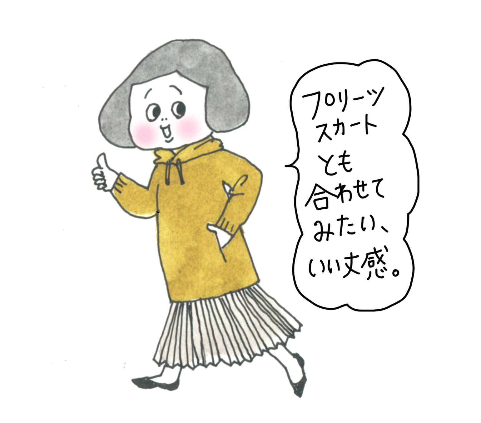 「プリーツスカートとも合わせて見たい、いい丈感」