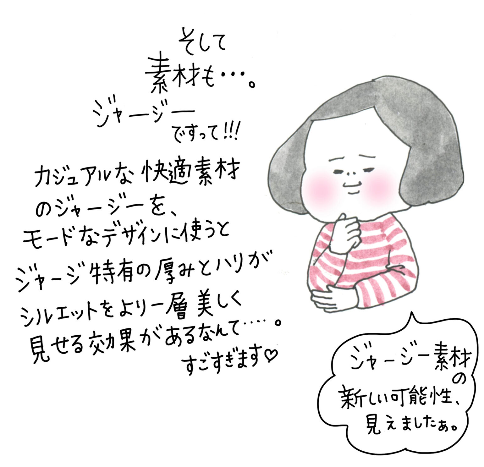 「ジャージー素材の新しい可能性、見えましたぁ」