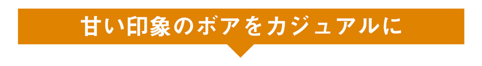 ミリタリーシャツをモチーフにデザインされたショートコートは、オーバーサイズでゆるっと羽織るのがおすすめ。もこもこした素材感が甘い印象のボアも、カジュアルに仕上がります。昨年から引き続き人気の旬カラー・ブラウンで今っぽいおしゃれ感も手に入れて。