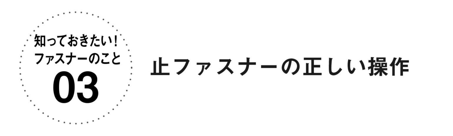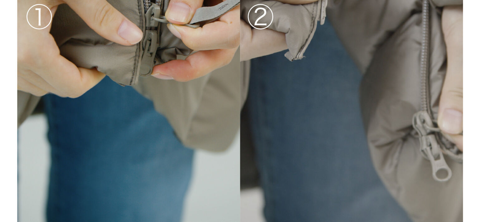 ファスナー開閉時に、生地を噛んでしまうことがあります。その状態で無理に引っ張ると生地を傷めることがあります。噛んでしまった生地を横に引きながらスライダーをゆっくり戻すと、生地が抜けやすくなります。