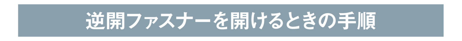 衣服の着脱はファスナーを完全に開いた状態でおこなってください。ファスナーを完全に開いていない状態で衣服を脱ぎ着すると、故障の原因になります。