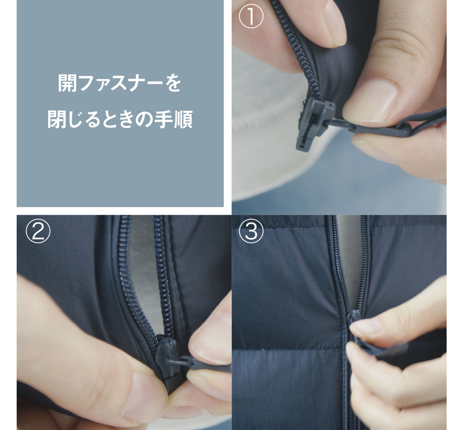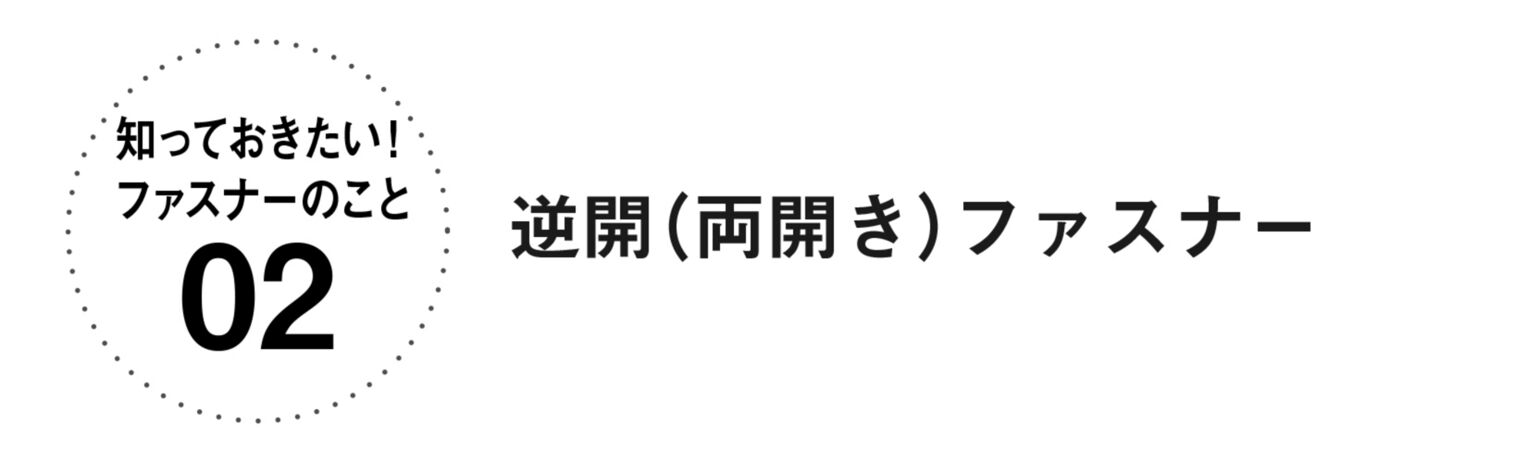 オープンファスナーには、「開ファスナー」と「逆開ファスナー」があります。ファスナーの開閉では、主に「スライダー」と「蝶棒」、「箱」に注意します。