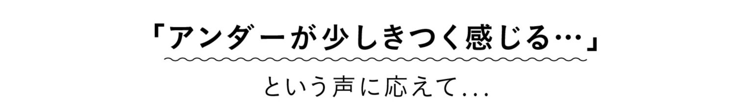 アンダーの前側を少し短く、より伸縮性が必要な後ろ側を少し長くするなど、全体のアンダー設計をサイズごとに見直しました。