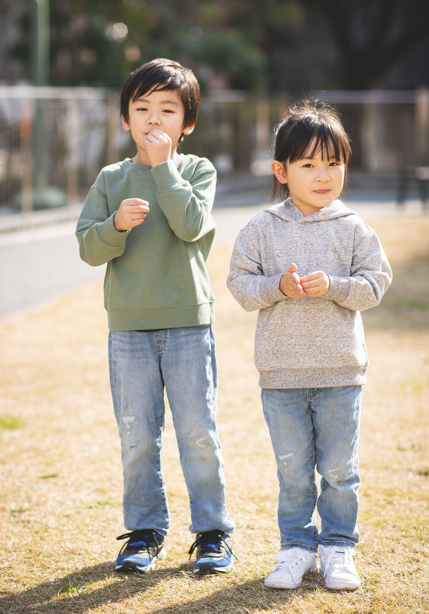 なんとキッズたちもくすみカラーとデニム合わせで登場!!可愛すぎたので思わずパチリ!!