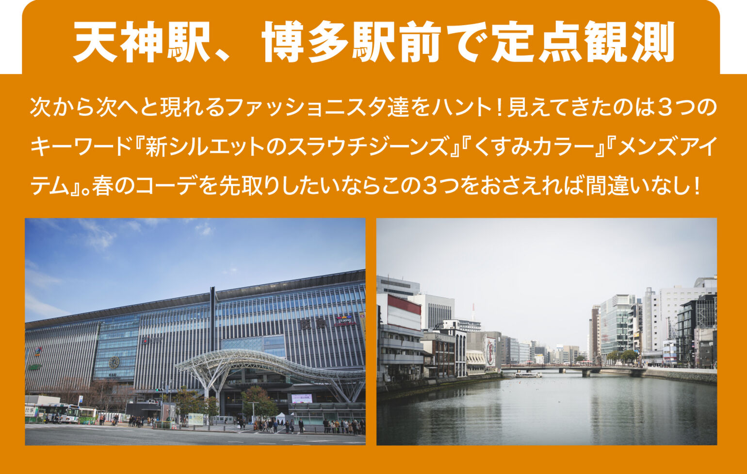 前回の札幌に続き、今回は福岡・博多のお洒落さん達をスナップ!この春注目のトレンドアイテムを取り入れた最旬コーデで登場です。博多の女性はシンプルなのに洗練された着こなしの方ばかり!ヘアメイク、アクセづかいも言うことなし!すぐに取り入れられるコーデのポイントをお届けします!