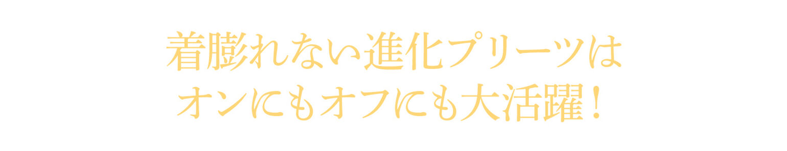 「縦のラインを強調し、すらっと見せてくれるのがプリーツのいいところでもありますが、ボリュームが出すぎると着膨れて見えることも。その点このプリーツは、折り目が一定方向にそろっているので膨らみすぎず、膨張色といわれるパステルカラーでもスマートに着こなせます。新色のイエローは淡い色でも甘すぎず、それでいてパッと華やぐので大人にはとくにおすすめ。お堅くなりがちなジャケットも軽やかで女性らしい雰囲気に仕上がるので、お仕事にもぴったりです」