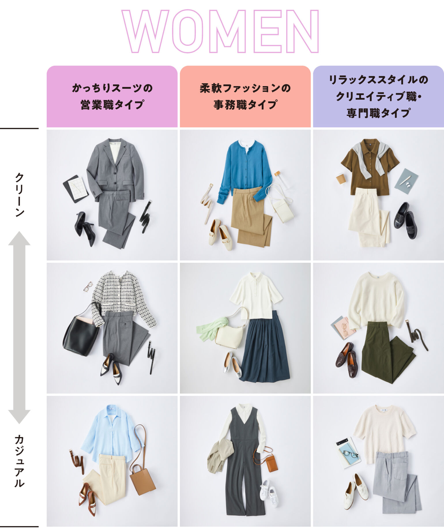 そこでLifeWearブランド「ユニクロ」とマイナビニュースはさらなる調査を実施。ビジネスパーソンたちの仕事服への意識について、職種による服装のカジュアル度の違いをもとに3タイプに分け、その実態についてヒアリングしました。今回は調査の結果を踏まえ、職種別のおすすめコーデをご提案します!
