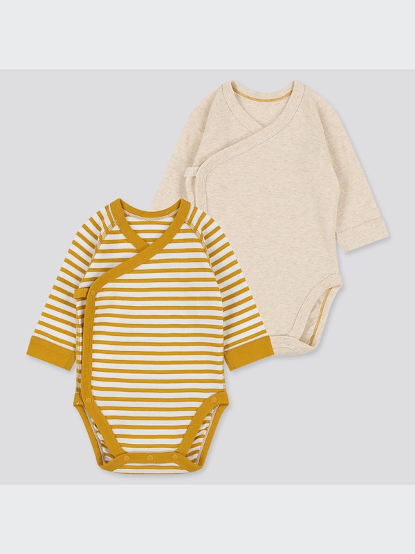 クルーネックボディ(ボーダー・長袖・前開き・2枚組)