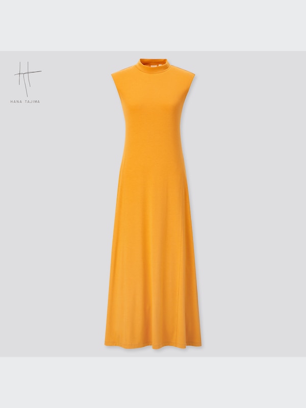 レーヨンクルーネックロングワンピース(ノースリーブ)