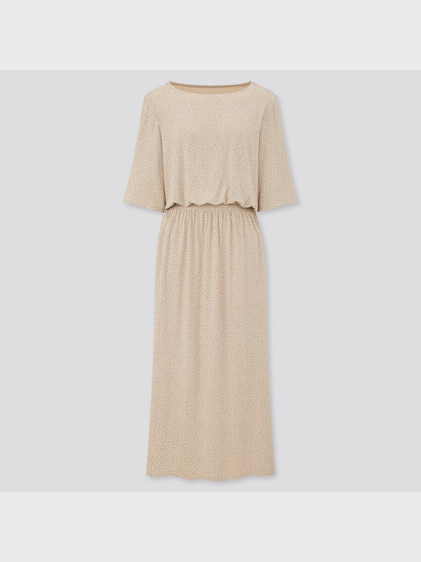 ドレープジャージーワンピース(ドット・5分袖)