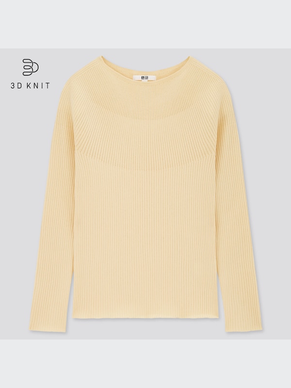 3Dエクストラファインメリノリブボートネックセーター(長袖)