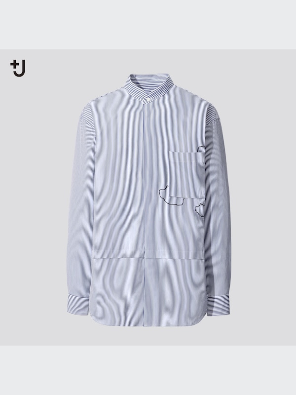スーピマコットンオーバーサイズスタンドカラーシャツ(長袖・雲)