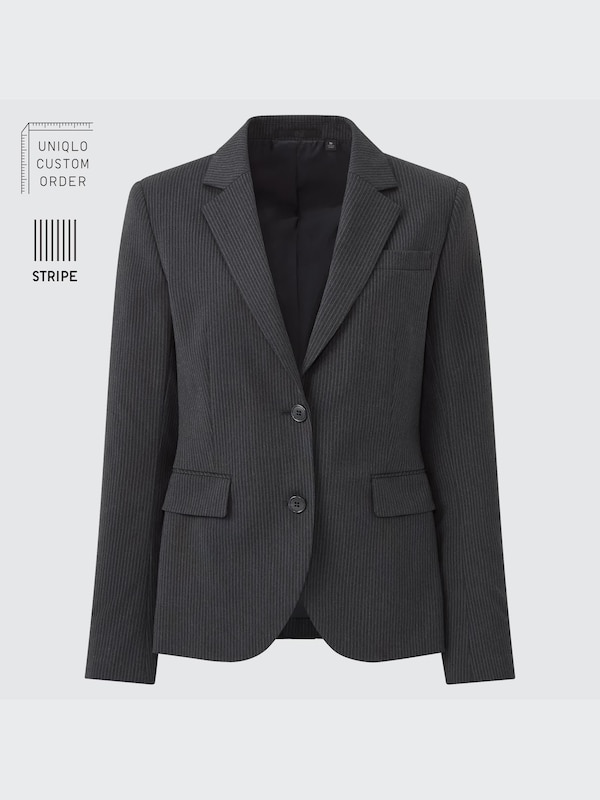 ストレッチテーラードジャケット(ストライプ・2つボタン・ミドル丈)