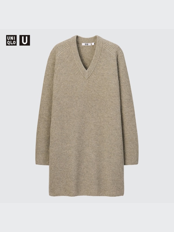 - パンツやスカートに合わせてロングセーターとして着たり、1枚でワンピースとしても着られる。