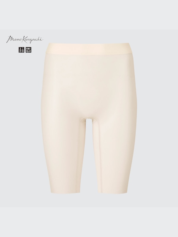 - シアーな素材感が美しい、ひざ上丈のボディーシェイパーショーツ。