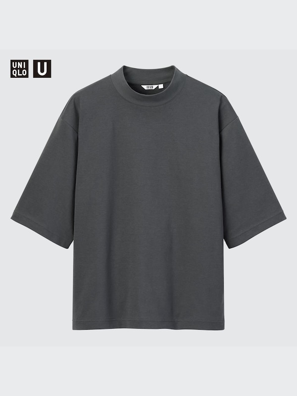 エアリズムコットンオーバーサイズモックネックT(5分袖)