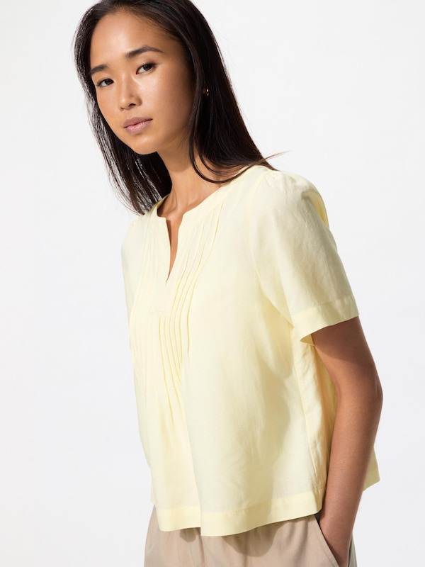 リネンブレンドキーネックブラウス