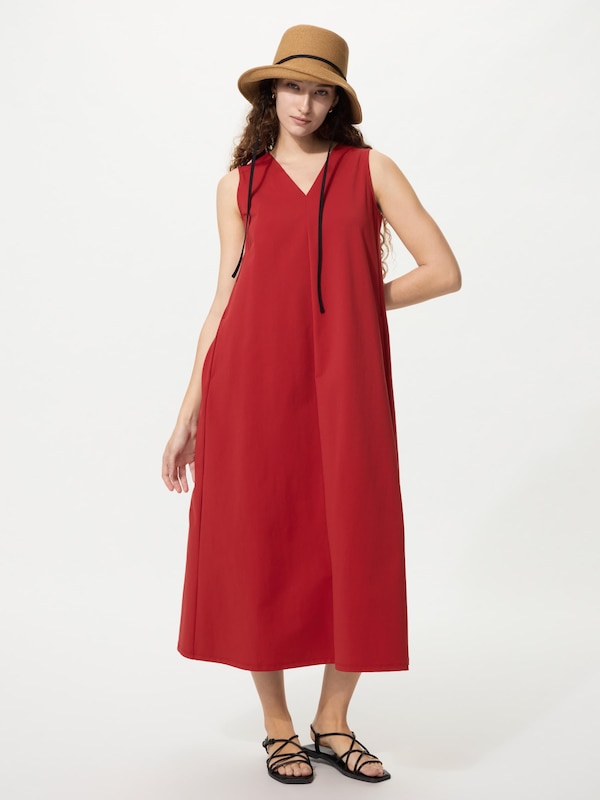 ウルトラストレッチVネックワンピースノースリーブ/丈長め