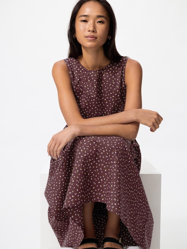 ウエストギャザーワンピース/ノースリーブ/フラワー