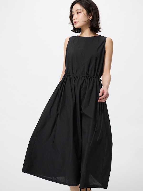 ウエストギャザーワンピースノースリーブ/ストライプ/丈短め