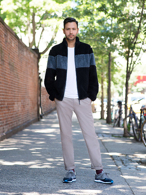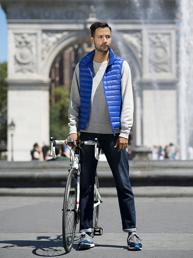 アクティブな観光をするためにジムに行くような格好をする必要はありません。その代りにスティーブンがすすめるのは、長い散歩を想定したラクな着心地、そしてニューヨークならどこにでもあるレンタル自転車に乗ることも考えた伸縮性のある素材。