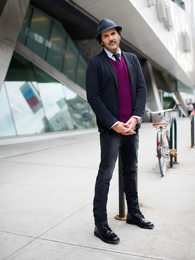 この2つの条件を満たすカジュアルな服装です。肌着も通気性と吸収性のあるものを ― これは寒い日にもおすすめです― そして足元を軽くするランニングシューズ。スティーブンはメッセンジャーバッグに着替えを一式持ち歩き、アクティブな昼間の活動から、アクティブなナイトライフへと、いつでも変身できるようにしています。