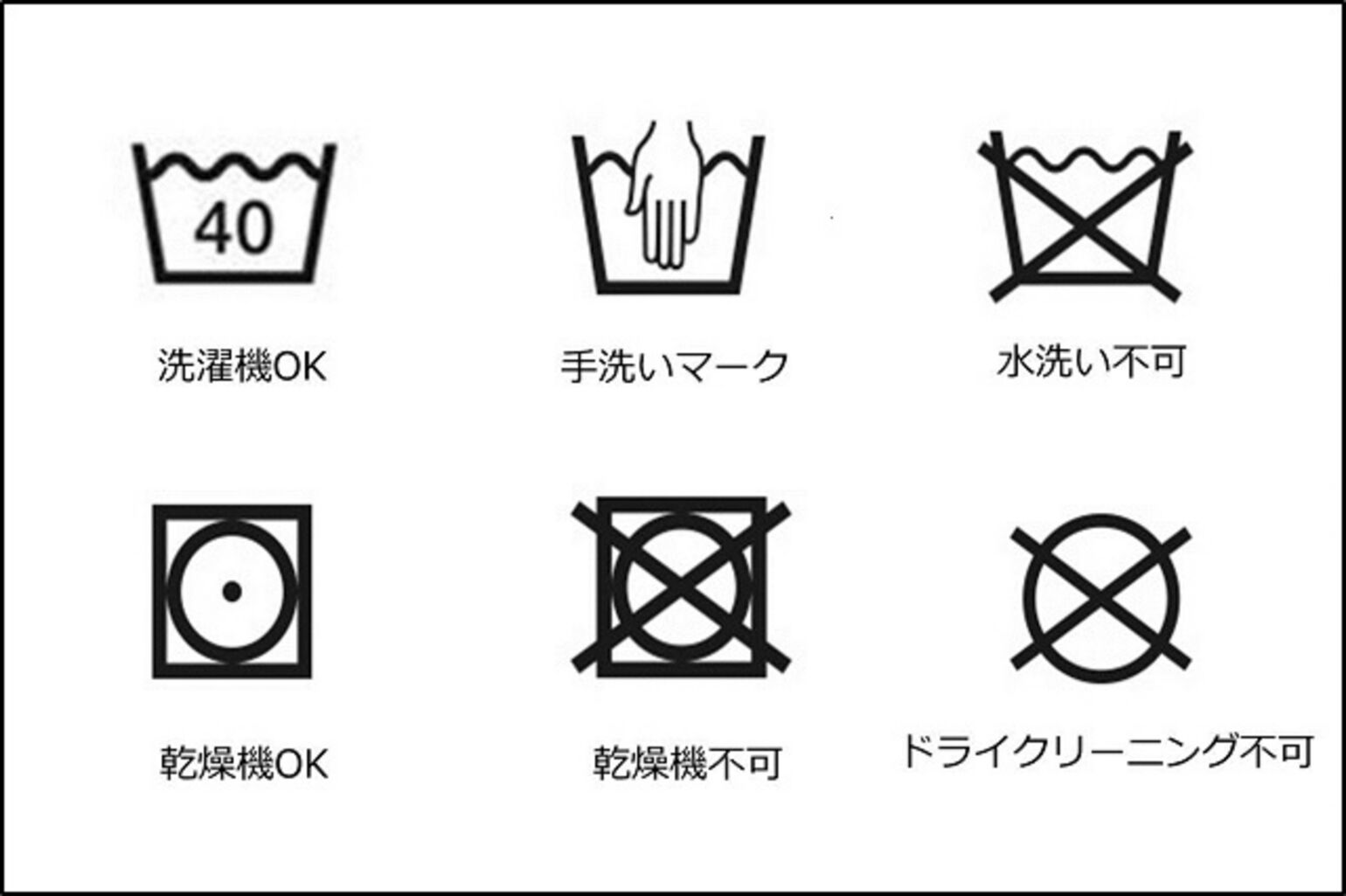 衣類を洗濯する際は、最初に洗濯絵表示を確認しましょう。ダウンジャケットを洗うときに見分けるポイントは、水洗い(洗濯機もしくは手洗い)・乾燥機・ドライクリーニングができるのかどうかの3つです。
