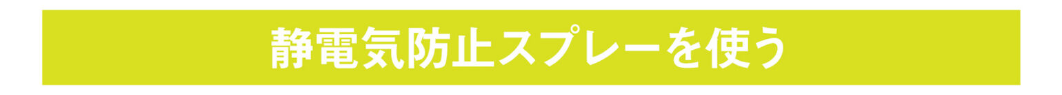 摩擦による静電気を防ぐために、市販の静電気防止スプレーを使うのもおすすめです。静電気が起きないように予防してくれるだけでなく、帯電してしまった静電気の除去もできる優れもの。ただし、ついてしまったホコリを取ることはできないので、ホコリやゴミがついてない状態でスプレーしましょう。